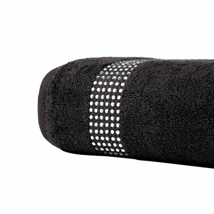 Made from a plush and durable cotton terry material, this towel is available in a range of vibrant colors to suit all decor and styles. Featuring a band of genuine glass rhinestones, the Stripe Bath Towel is designed to sparkle and shine for a lifetime.