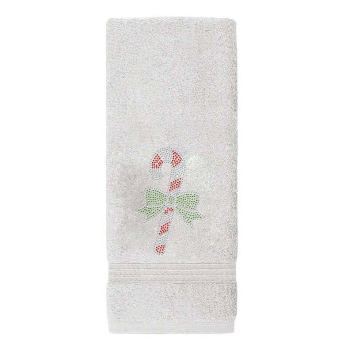 Welcome the Holiday season in sweet style with our Candy Cane Hand Towel! Featuring a candy cane motif made of rhinestone crystals, this hand towel puts a festive spin on your bathroom decor and also makes a great gift this Christmas.