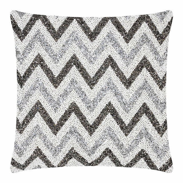 Adorned with an eclectic mix of white, silver, and charcoal resin rhinestones, this velvet pillow adds a touch of contrast and sparkle to your space. Because of its neutral tones and geometric pattern, the Chevron Pillow can be mixed and matched with various other pillows in our collection to suit your decor.