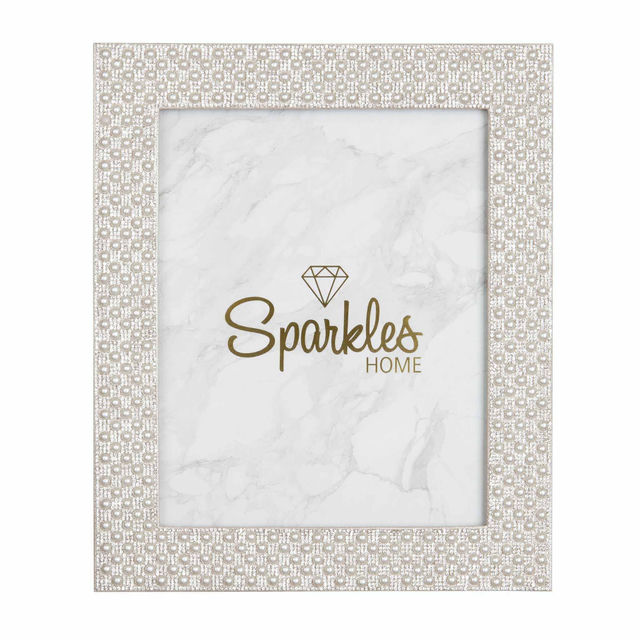 Display your most cherished memories in the elegant Montaigne Picture Frame, exclusive to Sparkles Home. This divine rhinestone and pearl picture frame is the perfect border for wedding photos, portraits, and other precious moments.