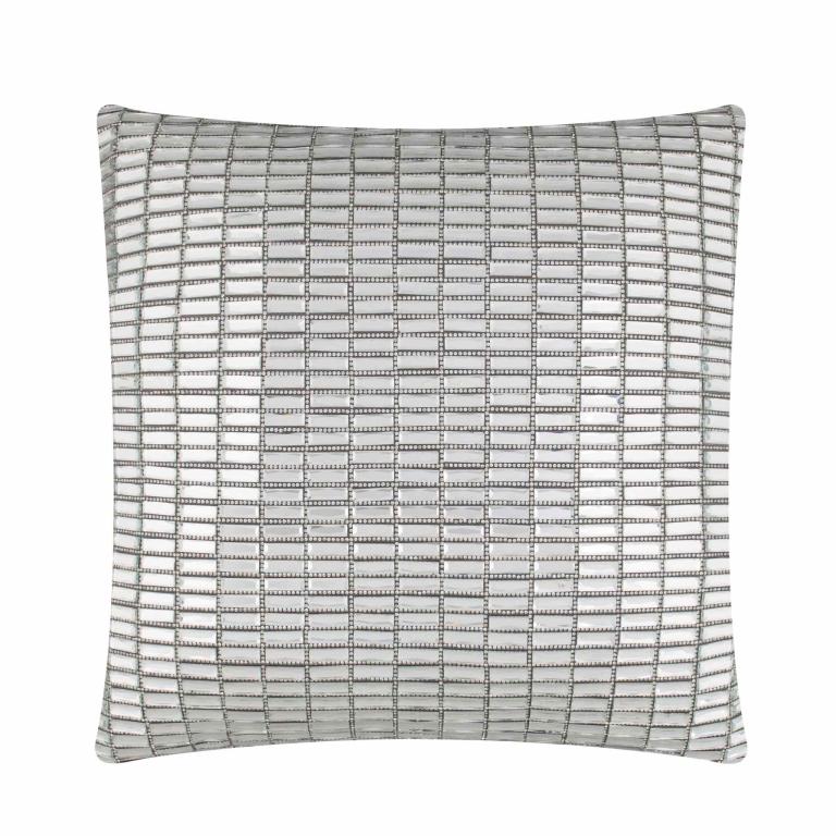 Take a walk down Fifth Avenue. This velvet pillow is soft to the touch, while the rectangular glass stones bordered by rhinestone sparkles make a dramatic statement. The carefully arranged glass rectangles not only catch artificial light but also dance with the rays of natural light, casting a dazzling shimmer across the room.