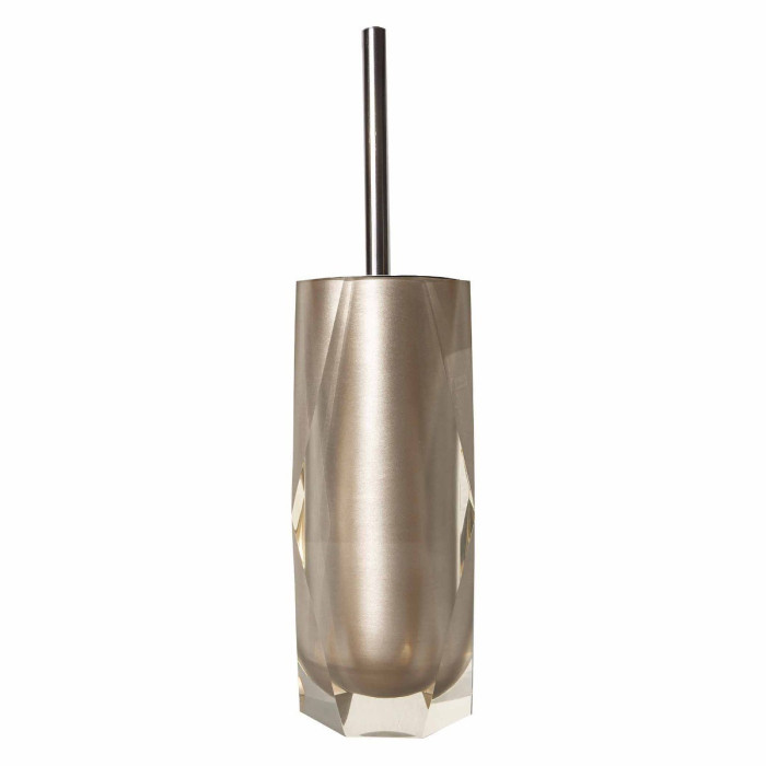 Faceted resin toilet brush holder in metallic silver with a diamond-like texture and a stainless steel handle. Faceted resin toilet brush holder in metallic silver with a diamond-like texture and a stainless steel handle.