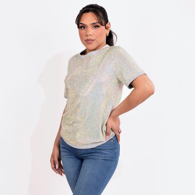 Description / Strass Rhinestone T-Shirt - Iridescent - Medium