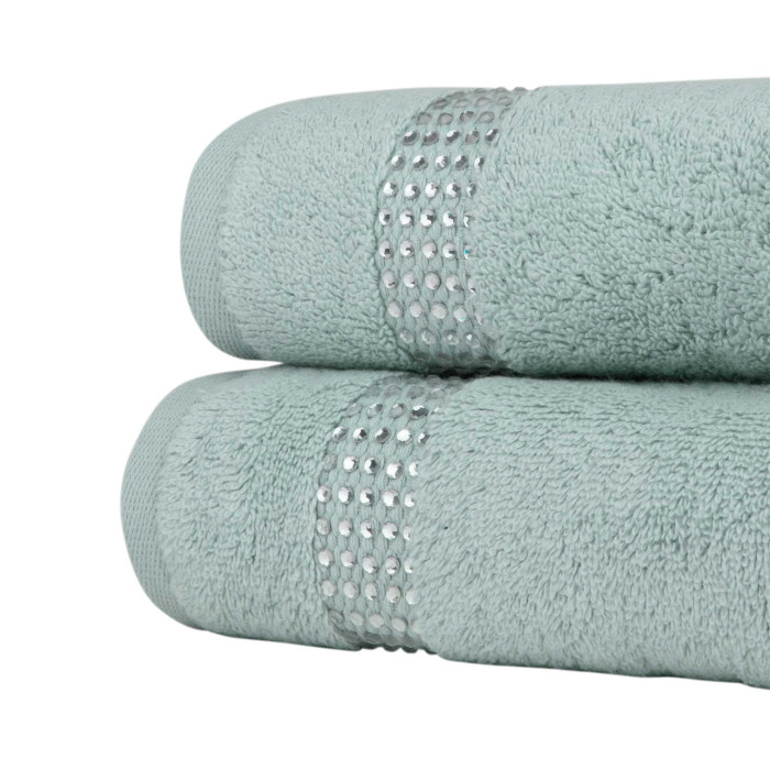 Made from a luxurious and durable cotton terry material, this set of hand towels comes available in a range of gorgeous colors to suit any decor and style. Featuring a border of genuine glass rhinestones, these towels are designed to shine for a lifetime.