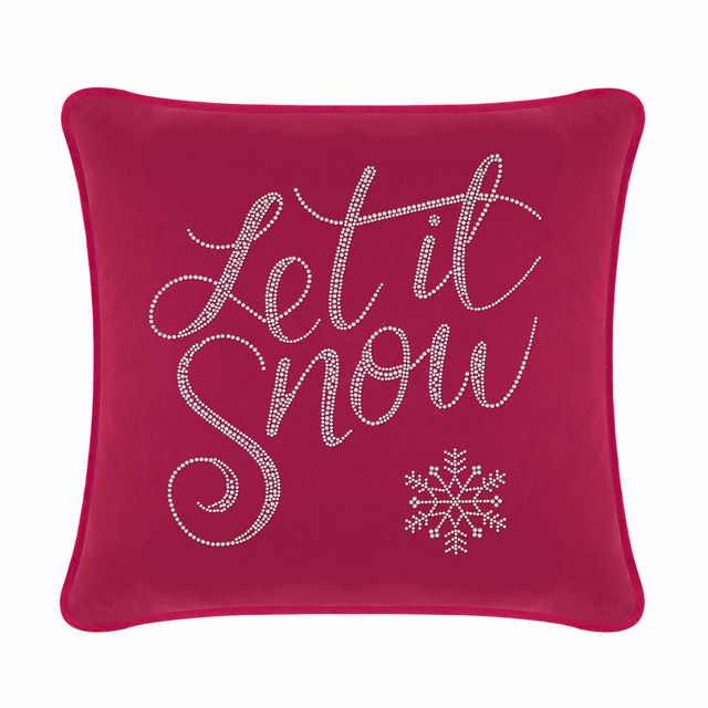 Next to a delightful fire, cuddle up with our Let it Snow Pillow. With its shimmering rhinestones and vibrant color choices, you'll be walking in a winter wonderland this season.