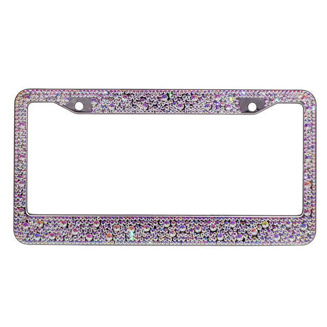Elevate your vehicle's style with this stainless steel frame adorned with a mix of real glass rhinestones. The varying sizes of the stones are strategically placed to catch and reflect headlights or sunlight, ensuring your car stands out from the crowd.