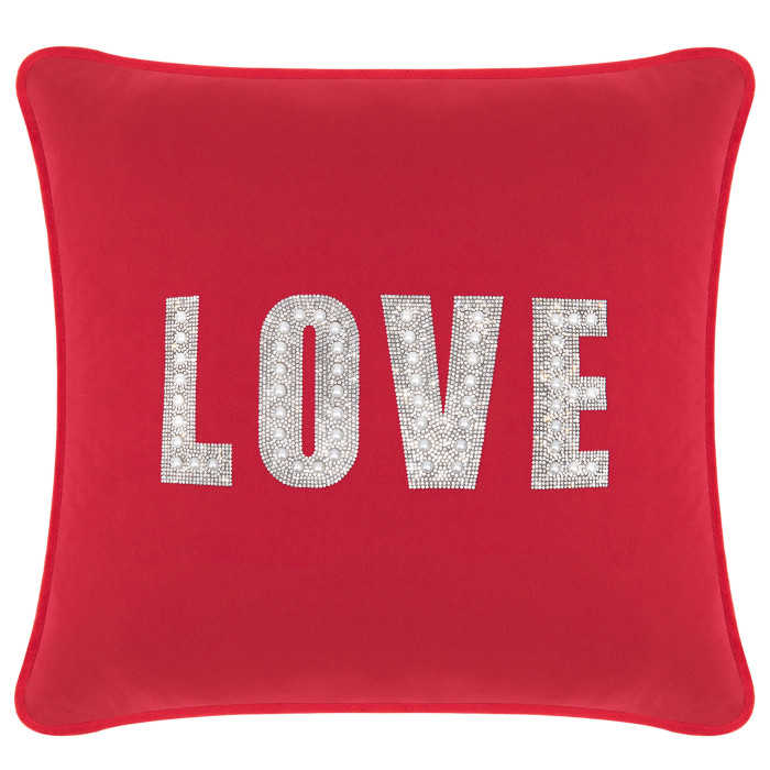 Say it with LOVE. Our Love Montaigne Pillow features our Montaigne pattern that spells out the word L-O-V-E in rhinestones and faux pearls. The perfect addition to any home, this pillow infuses a touch of romance and heartfelt expression to any room.
