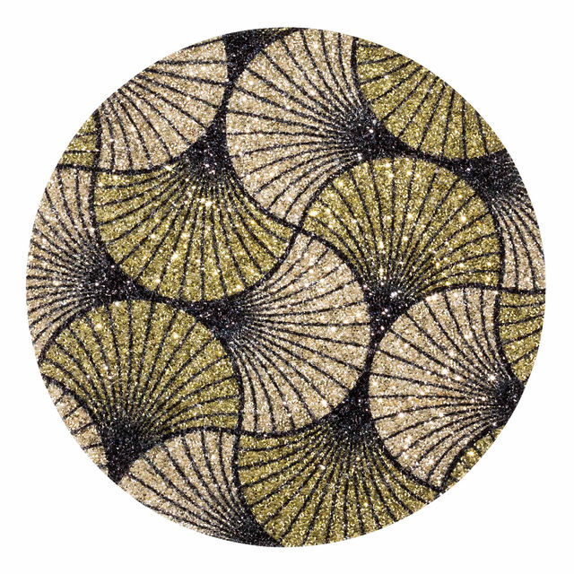 The warm golden tones and swirling sunburst motif, created from thousands of multifaceted rhinestones bonded to a flexible resin layer, make this placemat a unique and captivating addition to your table setting.