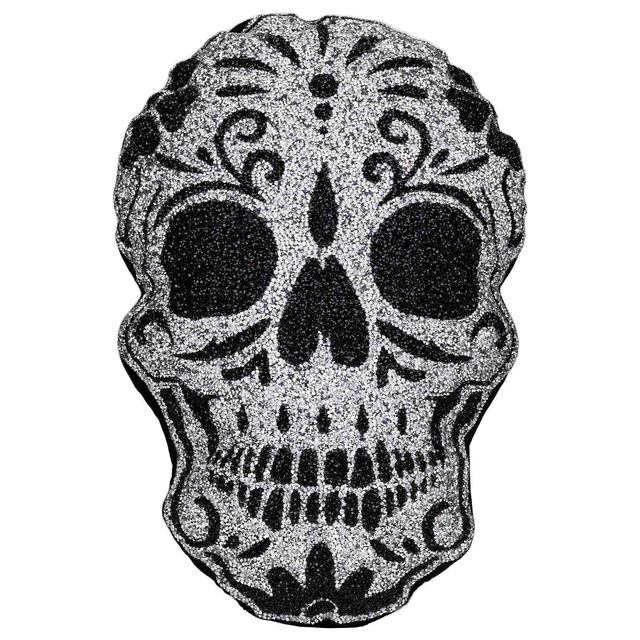 Introducing our Luminous Sugar Skull Pillow, a dazzling pillow that brings a touch of spooky glamor! Crafted from thousands of multifaceted rhinestones, this skull-shaped pillow is a great addition to your Halloween or Day of the Dead decor.