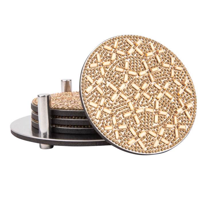 Don't drop your glass when you set eyes on the Madison Avenue Coaster Set! These showstopping coasters provide a dazzling impression with their glass rhinestones arranged in a chic crisscross pattern.