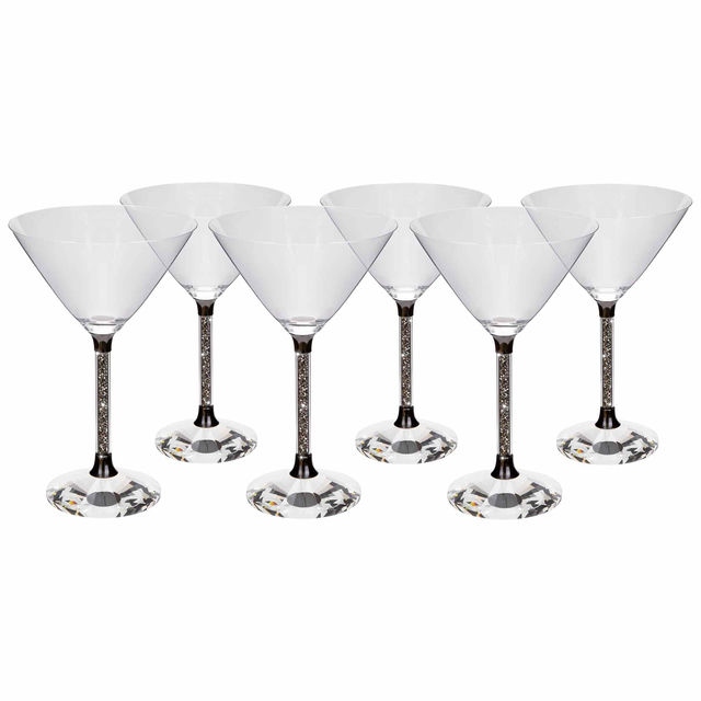 Crafted from high-quality crystal, each stem of these martini glasses is filled with glass rhinestones in your choice of silver, gold, charcoal, and rose gold. The faceted base catches the light, while the wide bowl allows for an optimal tasting experience, enhancing the flavors of your martini or cocktail of choice.