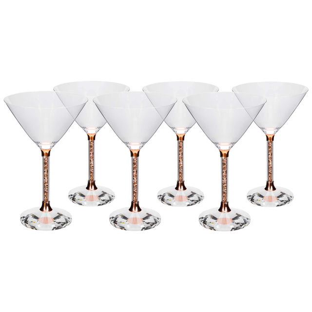 Crafted from high-quality crystal, each stem of these martini glasses is filled with glass rhinestones in your choice of silver, gold, charcoal, and rose gold. The faceted base catches the light, while the wide bowl allows for an optimal tasting experience, enhancing the flavors of your martini or cocktail of choice.