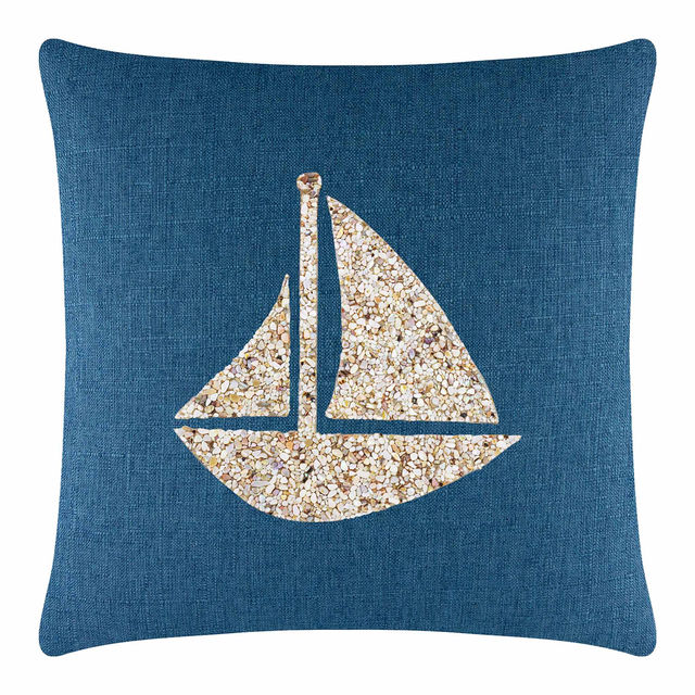 Sail the seven seas with our Shell Sailboat Pillow! Featuring an intricate sailboat pattern made up of tiny seashells, this nautical-themed pillow is the perfect blend of coastal charm and elegance for your living space.
