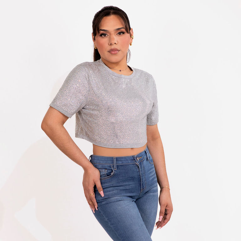 Description / Strass Rhinestone Crop Top - Silver - Medium