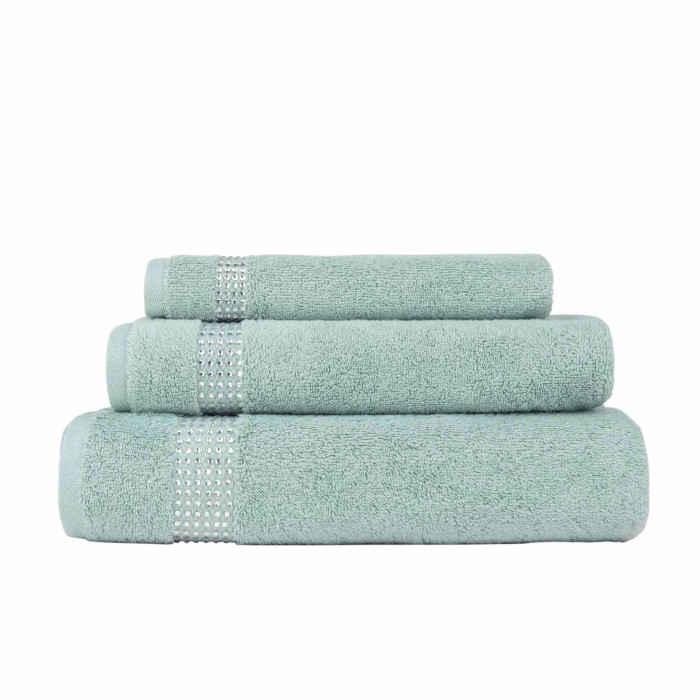 Made from durable, 100% cotton terry, this towel set comes with a glass rhinestone applique set elegantly on each towel for extra sparkle.