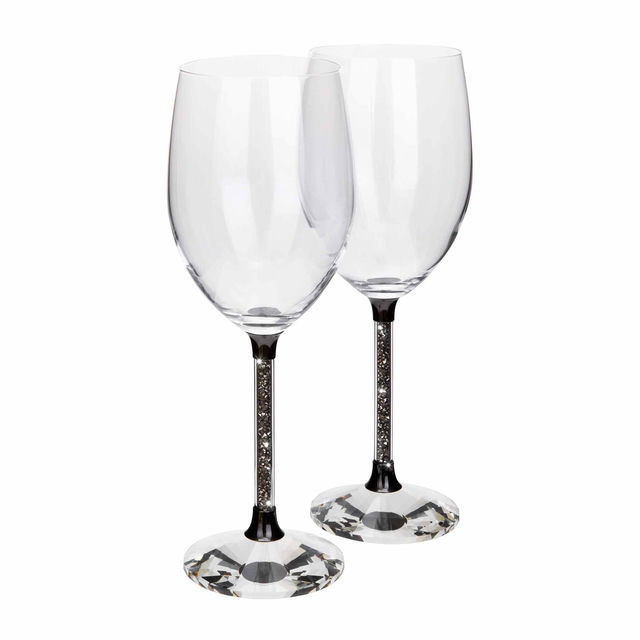 Crafted from high-quality crystal, each glass features a faceted base that catches the light beautifully while the stem is filled with sparkling glass rhinestones in your choice of silver, gold, charcoal, or rose gold.