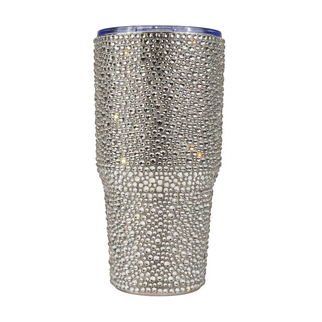 这款 30-ounce 随行杯采用双层不锈钢结构,确保您的饮品保持清爽冰凉或温暖舒适。高品质玻璃水钻外层增添一抹华丽,让每一口都闪耀动人。丙烯酸随行杯盖密封牢固,防止泼洒,鲜明的配色选择让您尽情展现独特的 bling 风格。
